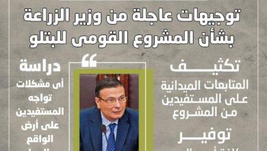 وزير الزراعة يوافق على صرف أكثر من 297 مليون جنيه تمويلاً جديداً للمشروع القومى للبتلو لصالح 425 مستفيد