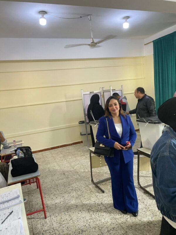 مرشحة حماة الوطن ضمن القائمة الوطنية كريستينا عادل تتابع أعمال التصويت بلجان القاهرة