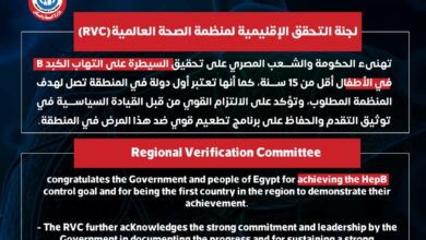 أعلن الدكتور خالد عبدالغفار نائب رئيس مجلس الوزراء وزير الصحة والسكان، استعداد الوزارة لتسلم شهادة جديدة من المكتب الإقليمي لمنظمة الصحة العالمية لشرق المتوسط، لتنضم إلى قائمة إنجازات حماية المواطنين من الفيروسات الكبدية، بتحقيق…